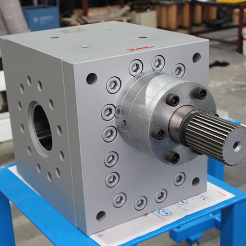 通常,熔体齿轮泵可以协助完成产生压力的任务。这使挤出机可以“专心”地进行喂料、熔融、混料工作。在没有熔体齿轮泵时,在挤出机的机头处会产生很大的压力。安装熔体齿轮泵后。压力高点是处于泵后而非泵前,这使挤出机内部的压力下降。由于挤出机不必产生高压力。故相应熔体的剪切强度下降,温度曲线平缓,温升降低。从挤出机的扭力方面考虑,这样会减少能里的消耗。